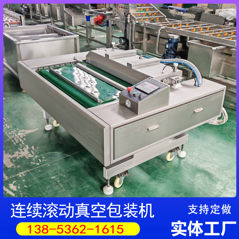 滚动式真空包装机的工作原理贴合腊肉加工需求,采用连续式滚动输送设计,将风干、冷却后的腊肉装入食品包装袋后,放置在传送带上,传送带匀速运转,将包装袋依次送入真空室。真空室自动闭合后,真空泵启动,快速抽出袋内空气,隔绝氧气、湿气与细菌,使腊肉处于真空环境中,随后热合系统启动,完成封口作业,水冷系统同步降温,确保封口平整牢固,不易出现漏封现象,后成品自动出料,实现连续化包装,无需人工频繁干预。